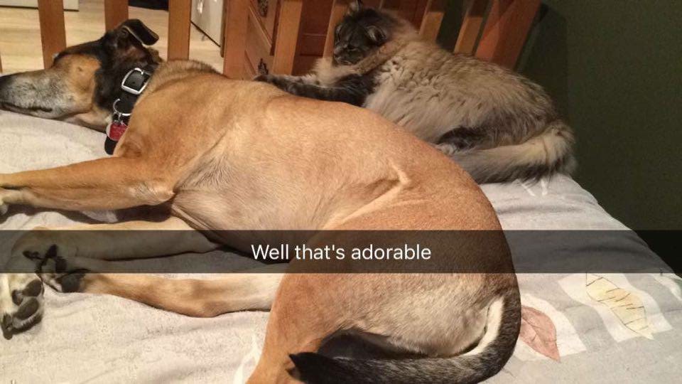 Can I love you better? Recently a member of my household has had their heart broken. It is hard to watch someone else feel sad and not know what to do! Then I realized that the dog and the cat intuitively know what to do, and frankly it is impressive. They just ‘be’ there. Both animals have parked themselves on the end of the bed or curl up at her side. They aren’t looking for anything in particular, they are just a silent presence in the room. And no, it isn’t coincidence that they are asleep by her feet, as most days that cat is curled up behind me by the desk and the dog is under it. I keep feeling like there is something I need to say , that there is wisdom I should impart that will make things better, but if I pay attention to my furry friends I realize that there are no words and that I should say nothing. All I need to do is be there if she wants to talk, and that I should let her come to me when she needs me. In the interim, I shall let the boys be there as a silent strength keeping her company and giving her love. The answer to my question, I do believe that animals can love you better, because they are so much wiser than us, they know how to be a support and provide strength to those that need it. What a gift it is to be born with the innate sense of how to love selflessly.