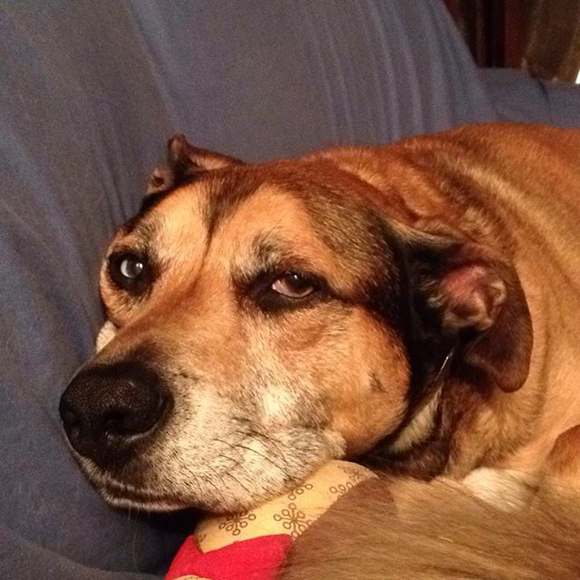 My old boy is showing signs of getting on in years! His muzzle is grey, he has cataracts in both eyes, he isn’t as spry as he once was, and he is deaf as a post! Or that is what I have come to believe, ninety percent of the time that dog can’t hear a dang thing! There are times when we come home and he is sleeping so soundly he continues to snore away on the couch and then acts surprised when he notices one of us walk by! For the past twelve days my older daughter and my Grandson have been visiting and nap time has become quite the challenge….my baby love is a light sleeper, and having two dogs under the same roof is making it very difficult for the poor babes to get a good sleep! Perhaps having the house so quiet has heightened Lucas’ hearing , but my dear old pooch seems to be more in tune to the noises in our neighbourhood! My usually silent dog that is snoring in the back room blissfully unaware of the busy goings on outside of his door, has become rather loud and obnoxious this week and hyper sensitive! I will say that having Rupert, my daughter’s barking Sheltie isn’t helping matters, but there have been numerous occasions where Lucas is the first one to sound the alarm! I have been pondering why Lucas is suddenly more able to hear when normally I have to go rouse him when it is walk time because he is oblivious to my calling him or jingling his leash! Have his auditory senses suddenly improved? Did a large junk of wax become dislodged? Is he feeling more protective because there is a baby under our roof and he feels he has to be vigilant? I know Rupert’s youthfulness and keen senses are keeping Lucas on his toes, but I am starting to wonder if my four legged friend is like the other men in my life and has selective hearing? What I do know is that every time that little baby settles down to sleep my four legged senior citizen pushes the closed blinds out of the way and stares out the window and barks at the most inane goings on which normally he would care less about! I will miss my visitors when they go, but I will also be glad to have my quiet old pooch sawing logs on the couch staying out of trouble!