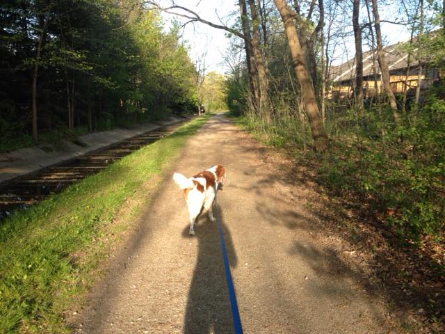 There are some days I think I am false advertising! Am I a Dog walker or is my charge a People Mover? Should I be receiving remuneration or should I be paying for their services? My new charge Max, I have no illusions of grandeur who is walking whom! This handsome and sturdy canine specimen is like the wind and I am the kite, flitting along behind. I find it amusing as we trek along together, he leads and the only option for me, is to follow! I have learned that if I relax and quit trying to be in charge, going along for the ride can be quite enjoyable. He tracks and travels, and I take in the sights of magnolia trees and lilacs in bloom, whilst maintaining an effort to prevent Max from pillaging people’s tulips that happen to be in the wake of his adventuring. It was a beautiful evening last night, my friend stopped and looked up at me for an instance and I could not help but be energized by his enthusiasm and zeal for exploring the familiar trails near his home. I feel with Max, I have to relinquish the idea of being the “Dog Walker” and embrace what it is like to be invigorated by the world and have a fire for putting one foot in front of another! We all have a purpose and for my four legged companion, he is “a People Mover” and my job is to make sure his nose eventually steers him towards home!