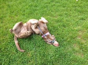 My life is full of comedic moments. I am clumsy and messy, I am the girl to forget to put the lid on the food processor properly and spray it’s contents all over the kitchen walls. I am kind of a disaster, which I am totally fine with, I am not worried about my over all appearance. One of my charges and I were walking over near RIM park, there are some absolutely gorgeous trails to meander on. Due to the copious amounts of rain we have been getting as of late, I decided to stay away from the river trail and struck on the path through the farmer’s field, I figured I was being smart! We were plodding along, and my cell rang…often I won’t answer my phone when I am out walking but I had just sent a picture of my companion via text so I thought maybe one of her people had something they wanted to communicate I fumbled around to answer the call while keeping my eye on my charge. Imagine my surprise when I realized we were about to wade into a rather sizable deposit of water on the path. Thinking I was smart, I veered onto the grass with the concept that we would stay dry and take the high ground (I should also mention, the grass is where the snakes hang out, so this was incredibly brave on my part). HOLY CRAP, instead of serpents we were both caught off guard as we sunk into the mush, what seemed sensible was in fact a poor choice. There I was, holding a phone talking to a different client, and my shoes were filling with muddy water! I realized my sweet girl was so confounded by the experience of sinking that she thought the best way to cope would be to lay down. I think I might have yelled into the poor gentleman’s ear “OH GOD NO!” Not sure he noticed. We floundered to get out of the marshy mess and got back to a dry spot. I think my girl was mortified she was all messy, what to do, what to do…oh, thank heaven Andrea is here, I will just wipe myself on her capri’s, how handy! I started snorting at this point, I am not sure which one of us looked more bedraggled? One side of her head was soaked, my legs were streaked with dirt and our feet were soaked. The up side, we were at the beginning of the walk so we still had a half hour to traverse around in the light breeze and sunshine, which would help to cake the mud on us so we could brush it off! By the time we were homeward bound we were less messy. I have to say I am down right grateful for the big towel her people keep in the garage which helped remove the remainder of the offending dirt! I love those amusing moments in life that are messy but put a smile on your face, it’s fun to wallow in the mud every now and then when you are with a good friend!