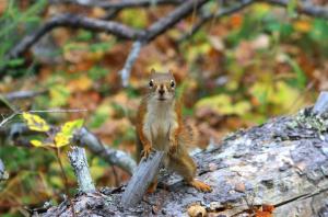 Exciting evening in my back yard! I have a few squirrels that find my yard a wonderful place to pass the time! Some have gotten quite bold, as the resident pooch is slowing down and not as agile as he once was, so they will meander around the base of the feeder and troll the garden looking for a meal. Which is fine by me, but this week I have a lovely Husky living with me, whom is also getting up in years, but is always up for a challenge. Whenever I open the door to the back yard he is off like a shot, with my boy Lucas in hot pursuit. My primary concern has been for my resident bunny that lives under the deck, so I make sure I chaperone the gents when Nature calls! This evening the boys tore up the back stairs to the yard, as they had caught a whiff of something good. I heard a raucous and felt the colour drain from my face, I thought they had cornered my rabbit. I bounded up the steps and headed across the deck and came to an abrupt halt as a wide-eyed squirrel came racing towards me, with the two dogs rapidly closing the gap. I felt awful, it had two drooling beasts waiting to get their chompers on it and now it saw me as another impediment to surviving the night. I was yammering away at it not to worry, but apparently my less than calm, rather shrill attempt to assure safe passage, because it scurried back in the direction of the boys. I have to say I felt a little confused how I could appear more menacing than two huge canines? The crazy little rodent zigged back and forth on the grass, in a fabulous effort to confuse the old dogs and somehow made it up the ladder to the fort built around our Silver Maple and out of harms way! Man oh man, was I relieved, I had to sit down I felt so overwhelmed. The squirrel sat in the Y of the branches and regained it’s composure as well, before climbing higher. I am ever so thankful there was a happy end to that heart palpitating back yard romp!