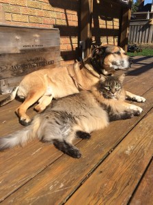 I am singing a new tune today, I reworked the lyrics and titled it “Let’s give ’em something to Blog about!” I really need to be careful what I put out into the universe, as the other day I was thinking that I didn’t really have much excitement in my life to share with others! Which brings me to today, boy did I have an interesting start to my morning! I took Lucas and Newton for a lovely forty minute stroll, dropped them off at the house, put my cat Romeo into the office upstairs and went to get Charlee for his morning constitutional. He and I had a fast paced jaunt that lasted about thirty-five minutes and then we made our way back to my abode. Often when I have three dogs staying at the house I will let them out into the back yard to run amuck instead of tearing up my domicle with their hijinxs. I had Charlee’s leash in hand and his food bowl and I unlocked the back door where it is fenced to let everyone run around and have a good sniff. Charlee was at the door, bum wagging, eagerly waiting for play time. The three were greeting each other at the top of the stairs when I realized there was an odd scritching sound beside me. I was standing at the entry way by the OPEN back door when my eyes locked on the culprit, a young black squirrel, he was trying to scale the concrete retaining wall without success…this is about when the dogs caught sight of him too! My brain was registering that there really wasn’t anywhere for him to go and so did my dear rodent friend, he decided the path of least resistance was to run in to my basement rather than into the jaws of three drooling canines. Too late for me to worry about the fact that the fluffy little black creature was now loose in my place of residence. I closed the door right quick to keep the dogs outside to prevent pandemonium from breaking out inside, as I was having visions of pictures flying off walls and all manners of disasters ensuing. With the dogs contained, I headed in to figure out where the squirrel had gone. I can’t express adequately how grateful I was that he had run down the hall and was hiding behind a desk (as I had worried he might have headed through the cat door into the bathroom or our furnace room and the places for him to hide would have been plentiful). Think, think, think…how do I catch the squirrel and get it back outside? I called my spouse, told him about my predicament and warned him he might be cycling home to my aid if I was unsuccessful and then ran through scenarios…I could try opening the window in the back bedroom and take off the screen, herd the squirrel into that room and hope it leaves…but that just didn’t seem proactive enough, there were too many variables where that plan could fail! After scratching my head for a wee bit I came up with the concept to take a vintage wooden Cocoa Cola box and trap the squirrel in that, which I managed to do successfully. The next step was to block off that area, and now bring the three dogs into the house and gate them upstairs so I could leave the basement door open to get the frightened little creature back outside where he belonged. With the dogs safely corralled upstairs I made my first attempt and failed, the squirrel was out of the box and on the loose again, I think my blood pressure was starting to climb at this point, but I took a deep breath and managed to get him back into captivity. I grabbed a pair of heavy winter mitts and a Rubbermaid lid and slid it between the desk and the box where the poor little guy sat quivering with fear, then carefully tipped it, keeping pressure on the top so he didn’t escape yet again. I dragged the box while holding the lid in place and we made it to the open door! I was contemplating how I should release the squirrel so it wouldn’t run back inside but before I figured it out, he somehow escaped, but thankfully he went up the stairs and out into the yard! Hallelujah! I did a “You rock woman” dance, slammed the door and went about restoring order to the chaos my visitor had created. Later on, in an effort to regain my inner calm, I grabbed a load of laundry and the pooches and I headed back outside so I could hang my sheets to dry. I finished that task and was feeling much calmer, I had a full list of things to accomplish for the day. I grabbed Charlee’s leash and dish again and had the laundry basket under one arm, I did a quick survey of the area to ensure there were no interlopers at risk of gaining entry to my home and I opened the door….if you remember back I mentioned I had locked the cat upstairs in the office, as Charlee hasn’t met him before and well, three dogs and one cat seem like potential disaster in the making, so keeping two species separate until there are more bodies at home seemed like a smart idea. Back to me humming and feeling calmer, I turned the knob, Newton whisked in the door with Charlee coming down the stairs when it registered that my dear Romeo was standing a couple feet in front of us….the two unacquainted strangers stared at each other long enough for me to clue in to close the damn door! How my pesky feline friend extricated himself from his safe haven remains a mystery to me? With Charlee and Lucas outside, I squeezed back inside, took the brazen Romeo back up to his prison where he will serve the remainder of his sentence until my spouse comes home and we can have a few more bodies for a proper introduction. Other than the continuous romping adventures of Newton and Charlee in the living room, my day has become hopefully less eventful! It is amazing to think how one half hour in a person’s life can be so action packed! The up side to all of this I thought, “HOLY HECK, do I have something to blog about!”