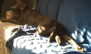 The next morning we went and grabbed Newton, as we neared the spot where we were going to get out to walk the remainder of the way I suggested that my daughter give her a little kiss on the head and say good bye. It was interesting, this time my friend didn’t seem reluctant or offended by being left at the side of the road. It gave me pause to evaluate that it is important for me to remember to be mindful of the feelings of my four legged companions. Helping them to go with the busy ebb and flow of our human world is an important thing to be mindful of. As one can see from the picture I snapped of her later that afternoon, Newton was quite happy to relax and go with the flow!